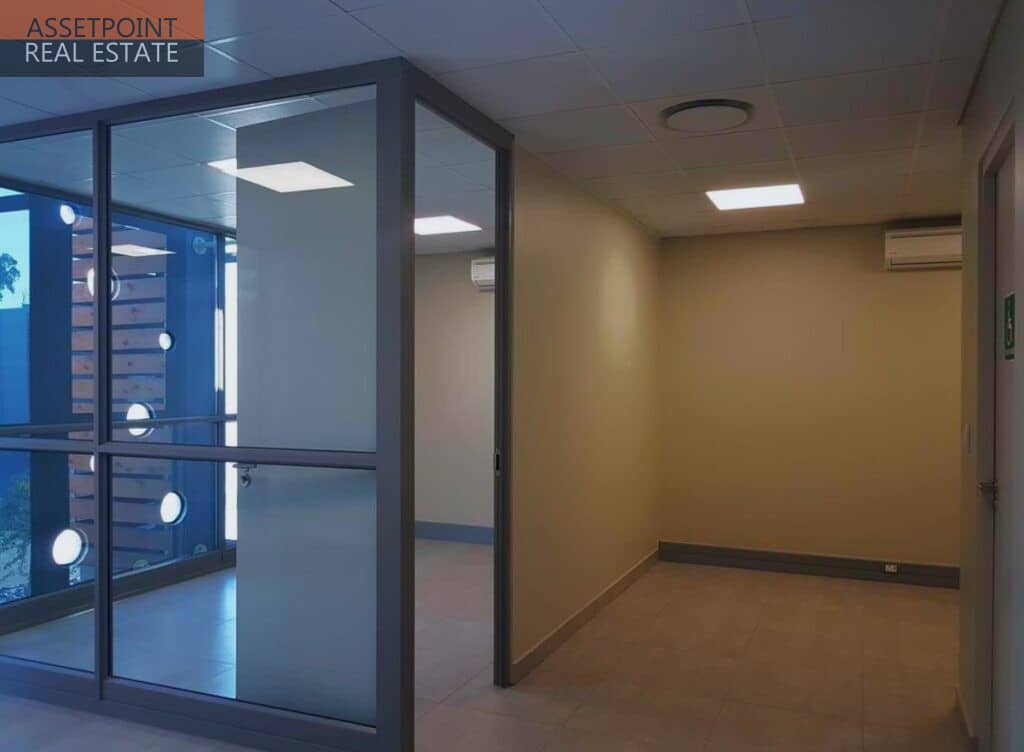 All units are neatly fitted with quality finishes in both kitchen and bathrooms. The offices have a combination of open plan areas as well as a glass enclosed private office/meeting room. Standard in all the units is air conditioning, fibre, intercom and alarm system. All units have prepaid meters for electricity as well as water. Each unit has a generous parking ratio, with additional parking bays available for visitors.