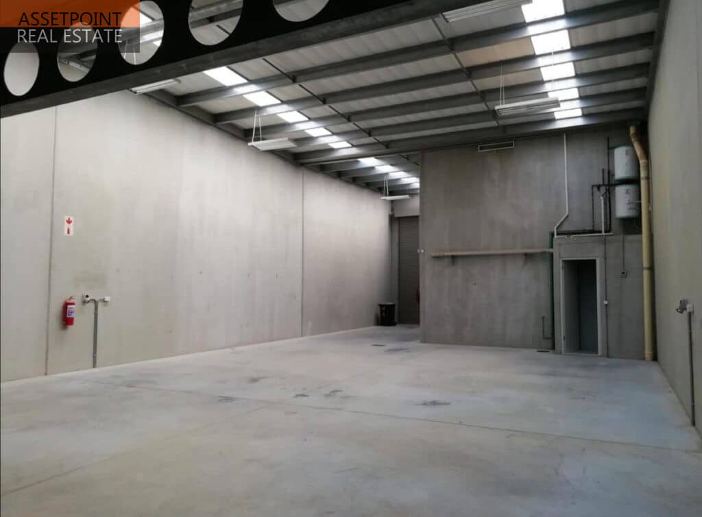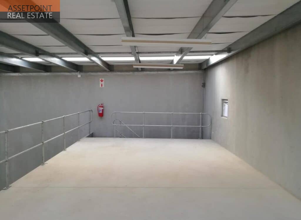 The warehouse has a height to eaves of 6.5m, is fitted with a 3.5m x 5m roller door, a solid mezzanine floor with a load bearing capacity of 500kg per m2. Abundant natural light in the warehouse during the day allows for good working conditions and saves on additional electricity usage.